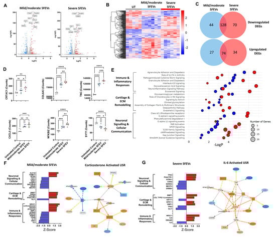 3.4. Synovial Fluid EVs from Patients with Severe OA Elicit Differential Catabolic and Inflammatory Transcriptomic Responses in Human Articular Chondrocytes