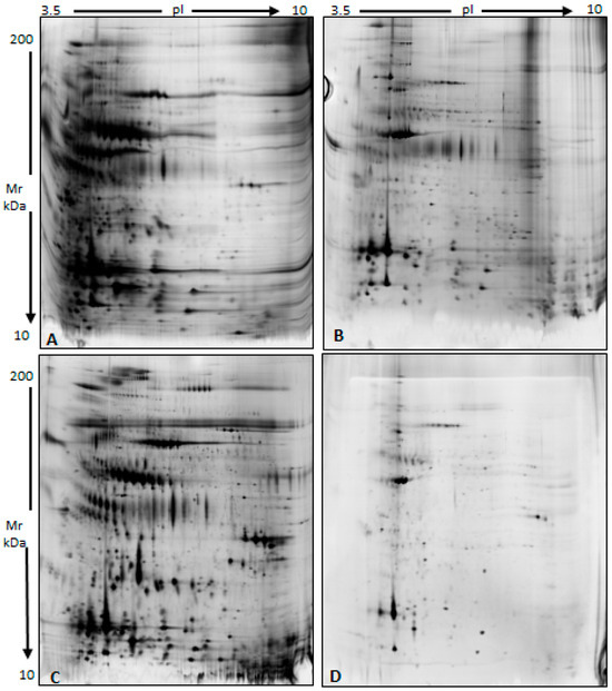 2.5. Proteomic Analysis—Gel-Based Analysis