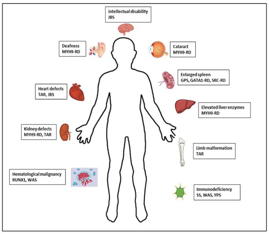 - Pecci, A.; Balduini, C.L. Inherited thrombocytopenias: An updated guide for clinicians. Blood Rev. 2021, 48, 100784. [Google Scholar] [CrossRef]