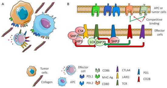 - Vijver, S.V.; Singh, A.; Mommers-Elshof, E.T.A.M.; Meeldijk, J.; Copeland, R.; Boon, L.; Langermann, S.; Flies, D.; Meyaard, L.; Ramos, M.I.P. Collagen Fragments Produced in Cancer Mediate T Cell Suppression Through Leukocyte-Associated Immunoglobulin-Like Receptor 1. Front. Immunol. 2021, 12, 733561. [Google Scholar] [CrossRef] [PubMed] [PubMed Central]