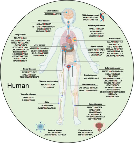 - Shaath, H.; Vishnubalaji, R.; Elango, R.; Kardousha, A.; Islam, Z.; Qureshi, R.; Alam, T.; Kolatkar, P.R.; Alajez, N.M. Long Non-Coding RNA and RNA-Binding Protein Interactions in Cancer: Experimental and Machine Learning Approaches. Semin. Cancer Biol. 2022, 86, 325–345. [Google Scholar] [CrossRef]