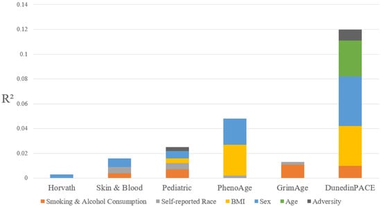 - Belsky, D.W.; Caspi, A.; Corcoran, D.L.; Sugden, K.; Poulton, R.; Arseneault, L.; Baccarelli, A.; Chamarti, K.; Gao, X.; Hannon, E.; et al. DunedinPACE, a DNA methylation biomarker of the pace of aging. eLife 2022, 11, e73420. [Google Scholar] [CrossRef]