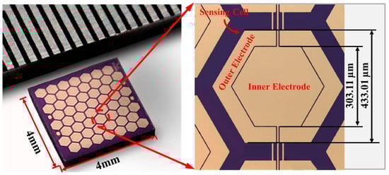 MEMS actuators, which convert various forms of energy into microscopic mechanical movements, are making a growing contribution and opening new capabilities in the fields of biomedical engineering and healthcare. Before making an informed decision as to which MEMS actuator is best for a given application out of the many types in the MEMS industry, the intended use and the characteristics of the actuators in question must be determined [4]. Generally, these actuators are divided into groups according to various driving actuation principles, including thermal, piezoelectric, and electrostatic principles. For example, piezoelectric actuators are employed in energy harvesters and microfluidics, while electrostatic actuators are frequently found in optical MEMS devices like micromirrors [41,42]. MEMS-based acoustic sensors, such as hydrophones, are becoming significant in underwater and biomedical sensing applications because of their sensitivity and small size. An MEMS hydrophone for acoustic pressure sensing with a honeycomb diaphragm and PDMS-encapsulated packaging is shown in Figure 5 [43].