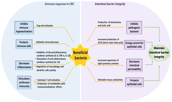 Beneficial bacteria—role in immune response and barrier integrity in CRC.