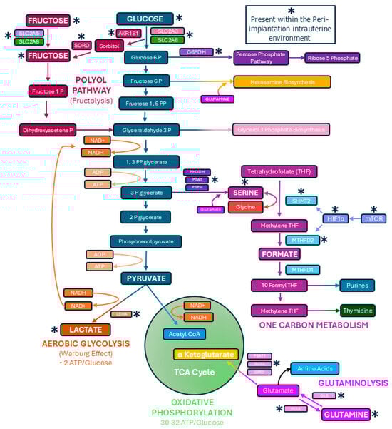 - Johnson, G.A.; Seo, H.; Bazer, F.W.; Wu, G.; Kramer, A.C.; McLendon, B.A.; Cain, J.W. Metabolic Pathways Utilized by the Porcine Conceptus, Uterus and Placenta. Mol. Reprod. Develop. 2023, 90, 673–683. [Google Scholar] [CrossRef] [PubMed]