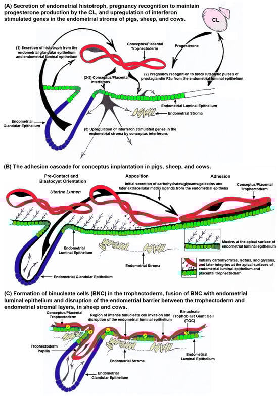 4. The Adhesion Cascade for Conceptus Implantation That Initiates Early Placental Development in Pigs, Sheep, and Cows