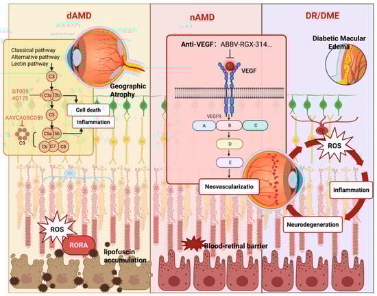 - Rowe, L.W.; Ciulla, T.A. Gene Therapy for Non-Hereditary Retinal Disease: Age-Related Macular Degeneration, Diabetic Retinopathy, and Beyond. Genes 2024, 15, 720. [Google Scholar] [CrossRef] [PubMed]