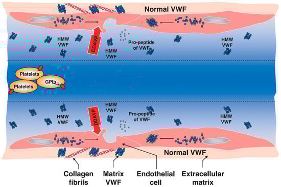 Swieringa et al. (2015) found that DDAVP use in 16 patients with postoperative bleeding after cardiothoracic surgery did not affect the coagulation profile or whole blood thromboelasticity, but did increase VWF:Ag from median 116 U/dL to 160 U/dL (IQR 126–187, p = 0.007) [49]. This was secondary to an increase in high molecular weight VWF multimers, as well as an increase in collagen-dependent thrombus formation and platelet phosphatidyl-serine exposure.