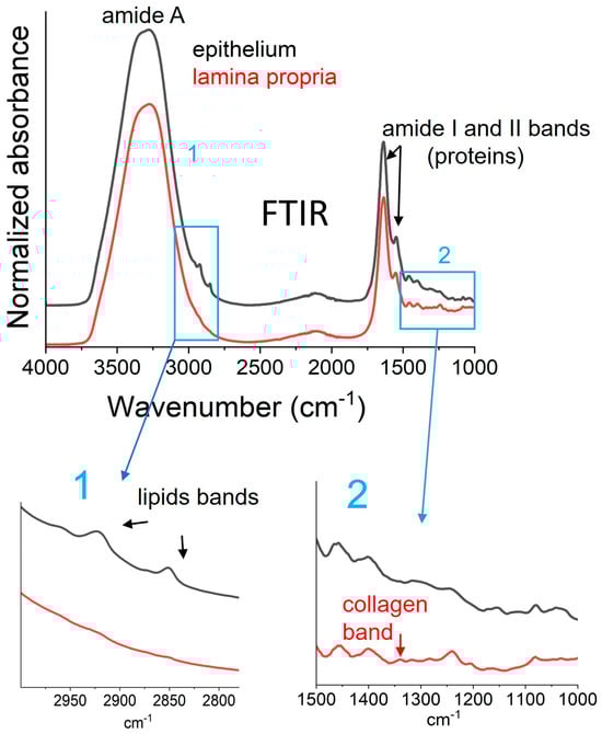 2.2. Vibrational Analysis of Both Lamina Propria and Epithelium from Oral Biopsies