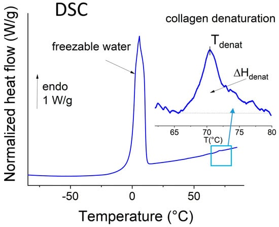 - Ober, C.; Samouillan, V.; Lacoste-Ferré, M.H.; Dandurand, J.; Lacabanne, C. Thermal and Vibrational Biomarkers of Porcine Oral Mucosa: Influence of Localization on Hydric Organization and Physical Structure. J. Therm. Anal. Calorim. 2020, 144, 1229–1238. [Google Scholar] [CrossRef]