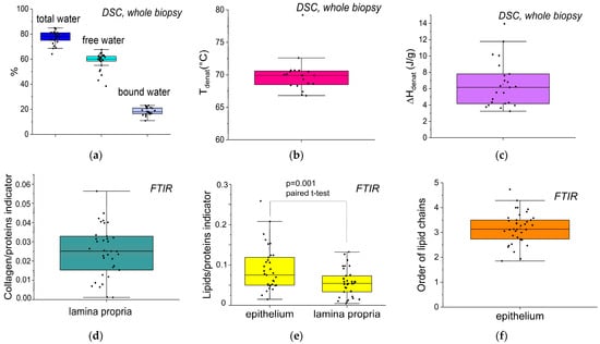 | Order of lipid chains | FTIR Lamina propria only | intensity (2927 cm−1)/intensity (2850 cm−1) |