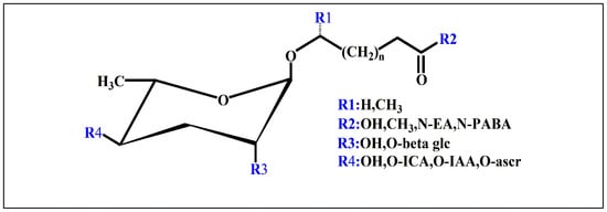 | Glucosides (detoxification capability) ABZ–glucoside [41] N-(β-D-glucopyranosyl)indole [42] N-(3′-O-phospho-β-D-glucopyranosyl)-indol [42] 1-O-(3′-O-phospho-β-Dglucopyranosyl)-phenazinee [43] | ![]() |