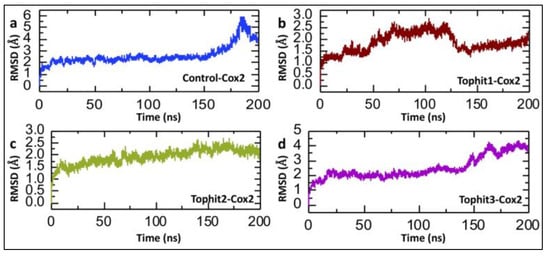 3.2. Molecular Dynamics Stability Analysis of Tophit-COX-2 Complexes