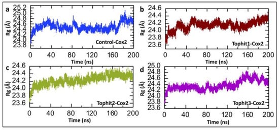 3.4. Post-Simulation Compactness Analysis of Tophit-COX-2 Complexes