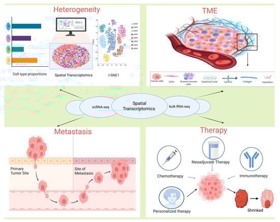 The treatment of breast cancer encompasses a diverse array of modalities, such as chemotherapy, neoadjuvant therapy (NAT), targeted therapy, immunotherapy, etc. Nevertheless, the pronounced heterogeneity inherent in breast cancer gives rise to a highly intricate TME. This complexity poses formidable challenges to treatment strategies. In this context, the ST technology emerges as a powerful tool, offering a novel and unique perspective for delving deep into the therapeutic mechanisms underlying breast cancer treatment and the complex phenomenon of drug resistance.