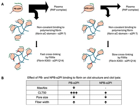 Summarizing the previous literature data in line with the results of our study, it seems that the cross-linking of the fast-acting PB-α2PI form to fibrin by FXIII is crucial for preventing early fibrin mesh degradation. However, the incorporation of the PB form is limited to approximately 38% of the amount in plasma. The NPB form is non-covalently incorporated into the clot independently of FXIII activity and, although a slow plasmin inhibitor, can further enhance the inhibition of fibrinolysis, but it is not sufficient on its own to prevent early fibrinolysis.