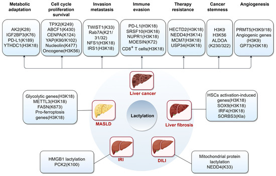 The liver plays a pivotal role in maintaining metabolic homeostasis, detoxification, and the synthesis of vital proteins, making it susceptible to a range of pathologies, particularly metabolic disorders. Liver diseases encompass a wide range of conditions that affect the liver’s ability to function properly, leading to significant morbidity and mortality worldwide. The significant burden of these diseases highlights the necessity of quantifying their impact and formulating strategies to alleviate their effects on public health [10,11,12]. Recent evidence indicates that dysregulated lactylation contributes to the progression of liver diseases [13,14,15]. Furthermore, targeting lactate transporters and critical enzymes involved in lactylation offers promising avenues for novel liver diseases therapies [3,13,16,17]. Additionally, by targeting lactylation and leveraging combination strategies, there is potential to overcome immunotherapy resistance and improve patient outcomes in various cancer types [18,19,20,21]. These insights collectively underscore the importance of a holistic approach in the development of next-generation liver disease therapies.