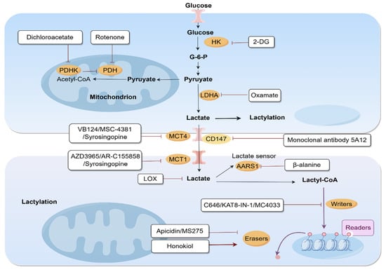 The Warburg effect, characterized by aerobic glycolysis and lactate accumulation, has been long established as a metabolic hallmark of cancer and inflammatory diseases. Traditionally considered merely a metabolic byproduct, lactate has recently been identified as a dynamic signaling molecule in emerging studies. This paradigm shift is largely attributed to the discovery of lysine lactylation (Kla), a novel post-translational modification (PTM) that establishes a direct link between glycolytic flux and both epigenetic and non-epigenetic regulatory networks [1,2,3,4]. Lactylation modification, characterized by the addition of lactyl groups to lysine residues, occurs on both histone and non-histone proteins, thereby exerting a broad influence on gene expression and cellular functions [4,5]. This process is regulated by a confluence of metabolic activity, enzymatic action, and environmental conditions. Glycolysis and its byproduct lactate serve as central drivers of lactylation, while specific enzymes modulate its addition and removal [6]. This reversible nature of lactylation makes it a potential therapeutic target across a wide range of diseases, especially in cancers [7,8,9].