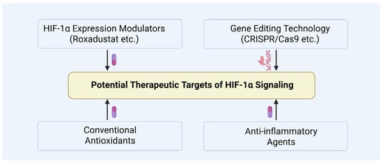Furthermore, combining HIF-1α-targeted therapies with conventional antioxidants and anti-inflammatory agents may yield synergistic benefits (Figure 15). For example, co-administration of n-acetylcysteine or curcumin with HIF-1α stabilizers has been shown to more effectively mitigate testicular tissue damage, highlighting the potential of such combination strategies for further investigation [140,141,142].