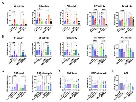 Mitochondrial OCR was measured using Instech equipment (NeoFox, Ocean Optics, Dunedin, FL, USA) at 37 °C. Calibration was performed with DW and 0.5 mol/L NaS2O4 solution [33]. Experiment sample: Add 40 µL of 1 µg/µL mitochondria, 90 µL substrate, and MAS buffer to a total volume of 340 µL. Adjust MAS buffer volume for any additional treatments, maintaining the total volume to 340 µL. After adding all components, quickly close the lid and record. Calculations are based on oxygen consumption between 8–12%.