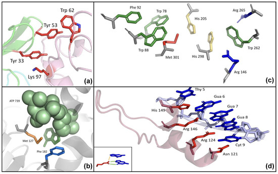 - Wintjens, R.; Liévin, J.; Rooman, M.; Buisine, E. Contribution of cation-π interactions to the stability of protein-DNA complexes. J. Mol. Biol. 2000, 302, 393–408. [Google Scholar] [CrossRef]