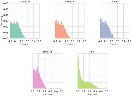 - The angle; it only applies to interactions in which the two functional groups are planar, i.e., contain an aromatic moiety (Phe, Tyr, Trp, His), a guanidinium group (Arg) or an formamide group (Asn, Gln). It is defined as the angle between the vectors normal to the planes of the two interacting functional groups and measures the degree of parallellism between the planes.