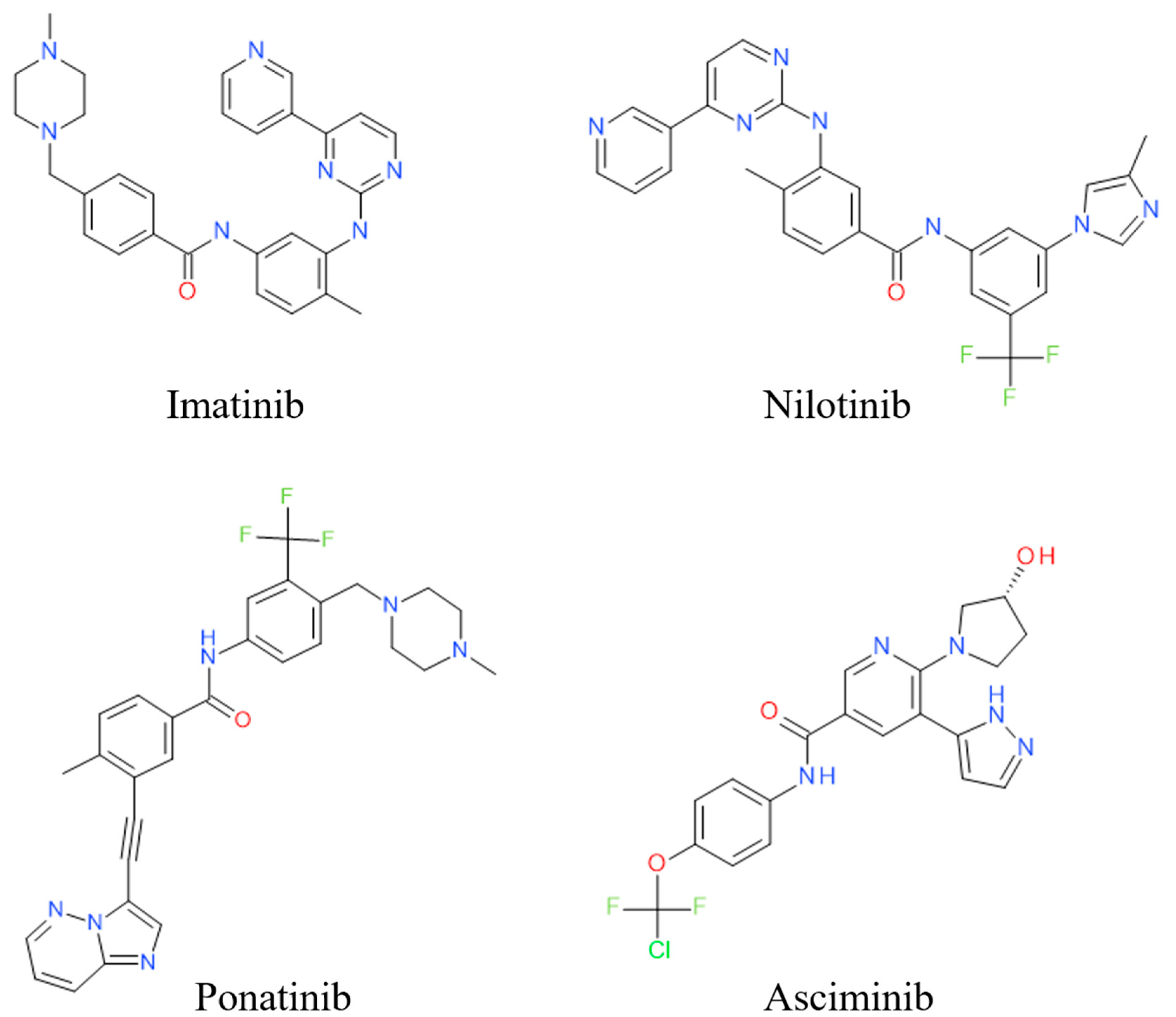 - Blay, J.-Y.; von Mehren, M. Nilotinib: A Novel, Selective Tyrosine Kinase Inhibitor. Semin. Oncol. 2011, 38, S3–S9. [Google Scholar] [CrossRef] [PubMed]