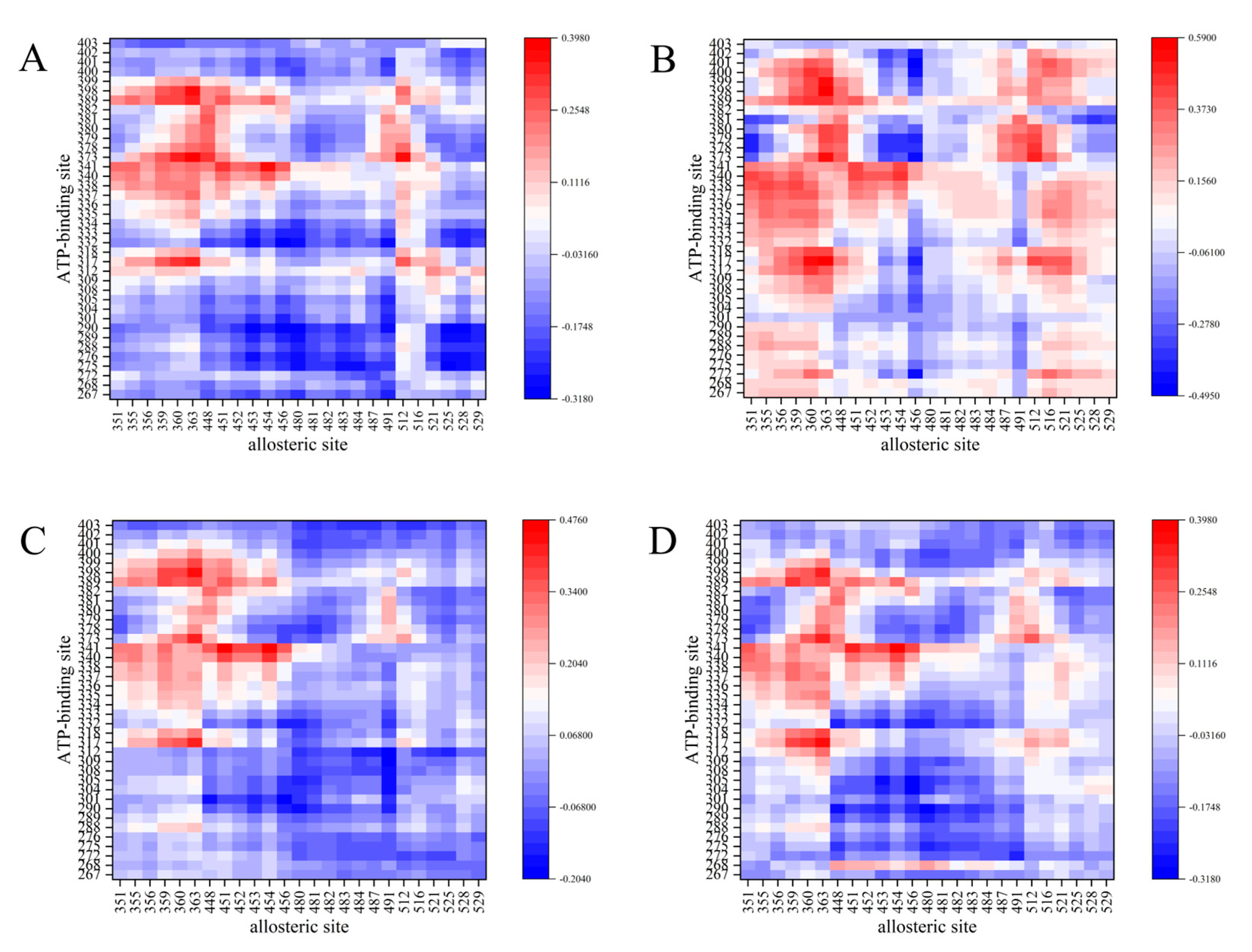 3.1. Correlation of ATP Binding Site with Allosteric Site