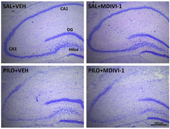 2.2. Lithium–Pilocarpine SE Model and Mdivi-1 Administration