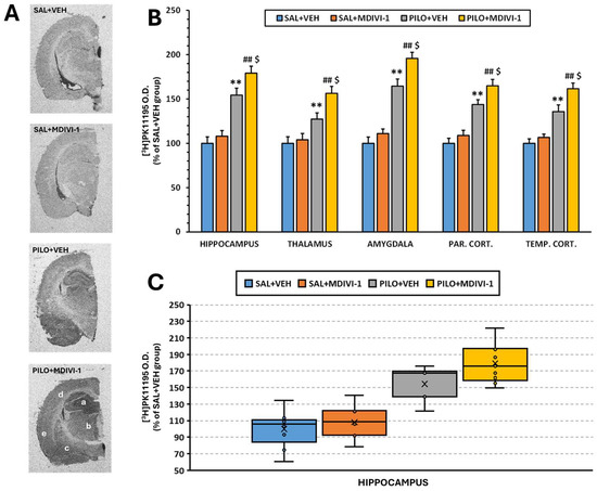 3.6. Microglia-Mediated Neuroinflammation ([3H]PK11195 Autoradiography)