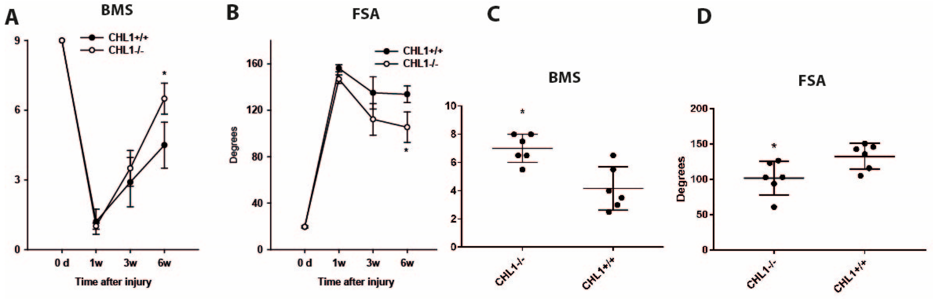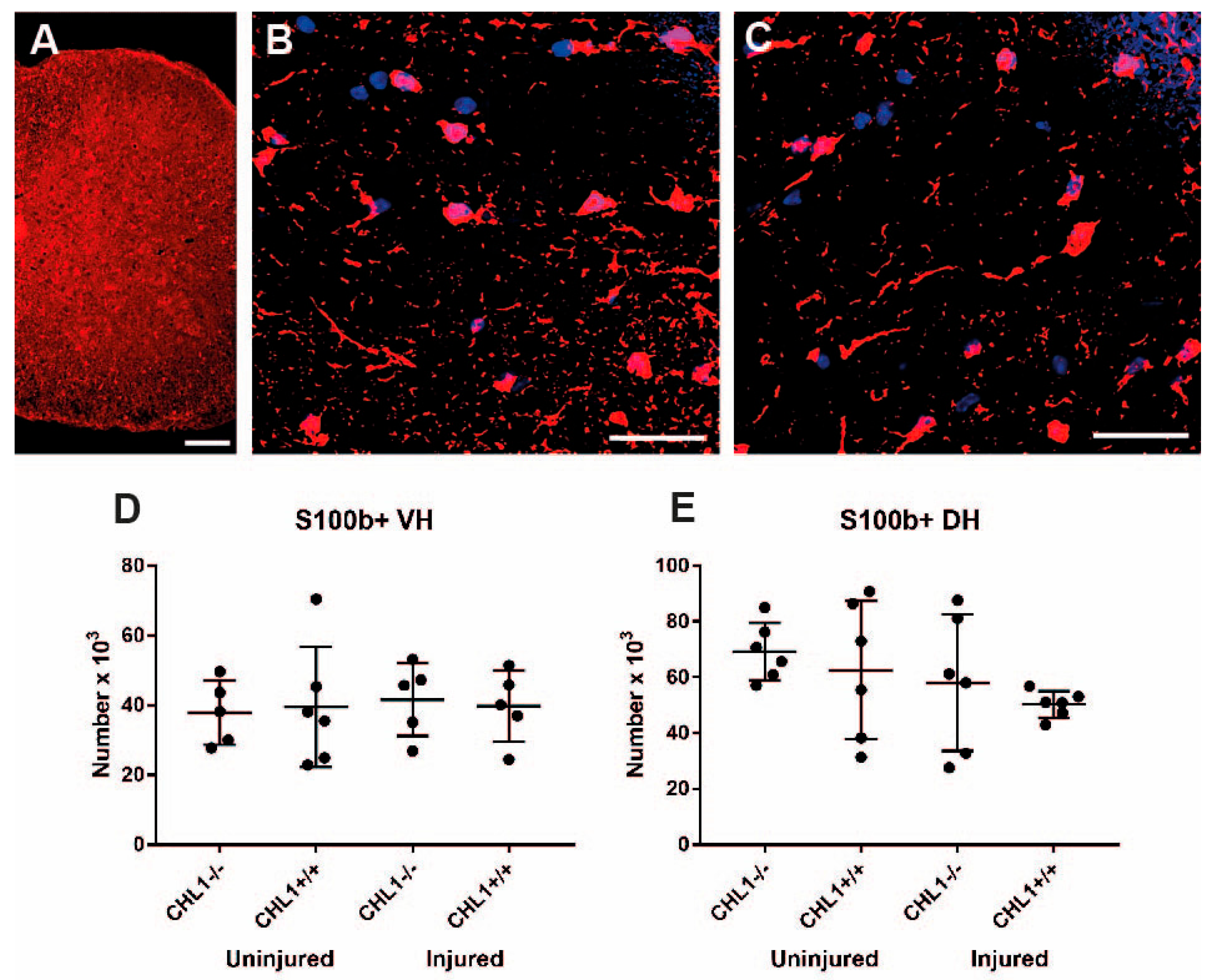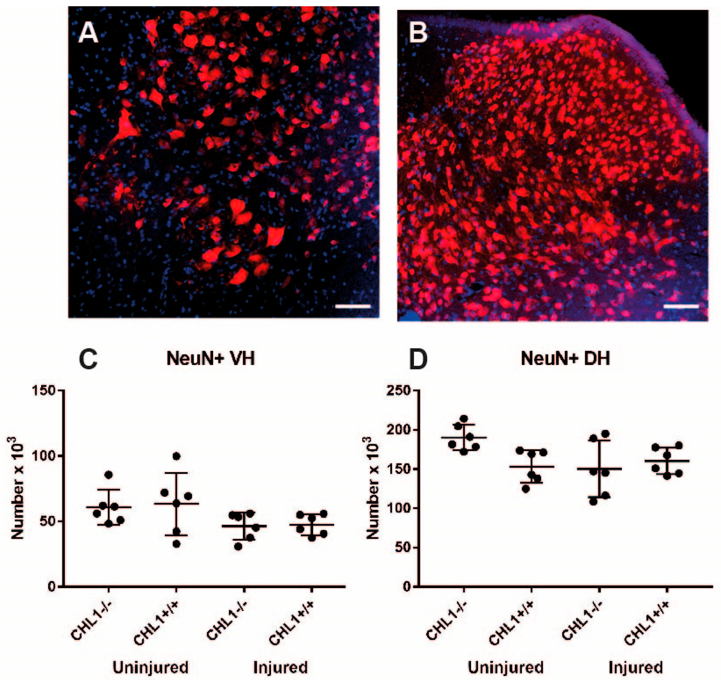 4.1. The Effect of Injury in CHL1+/+ Mice