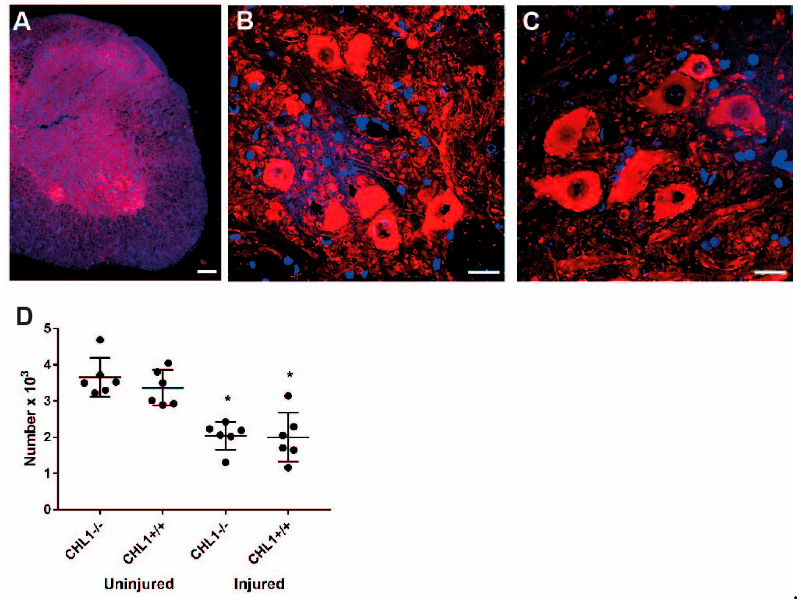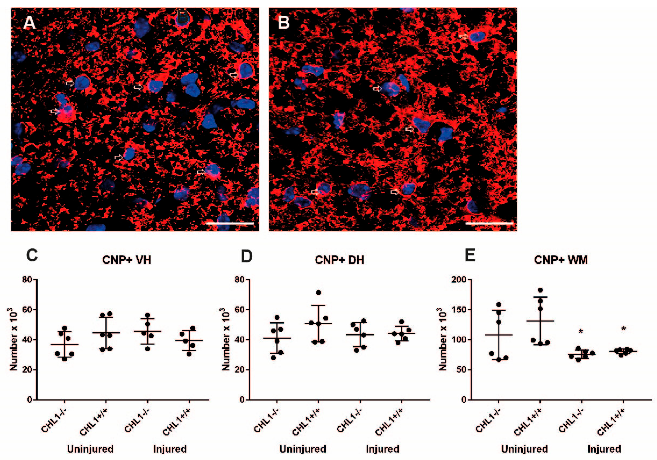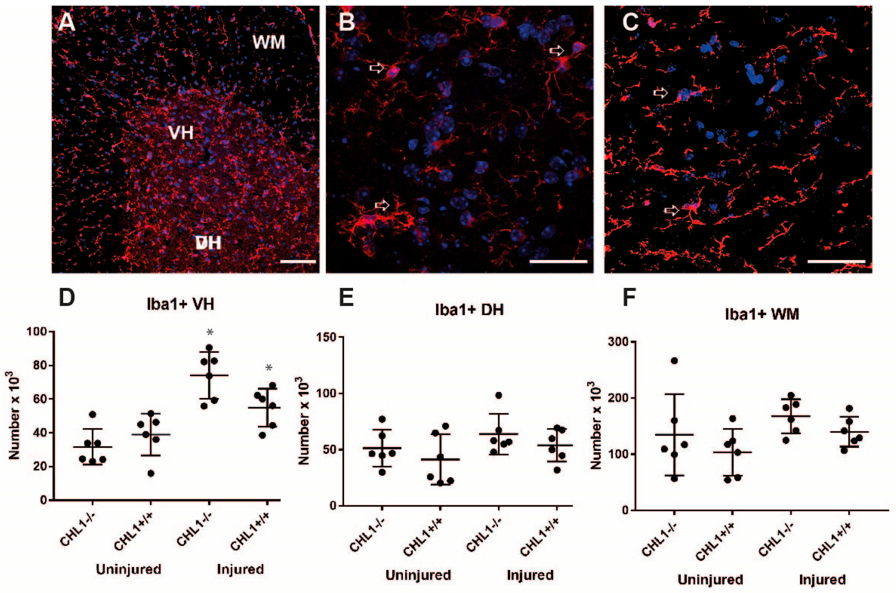 4.1. The Effect of Injury in CHL1+/+ Mice