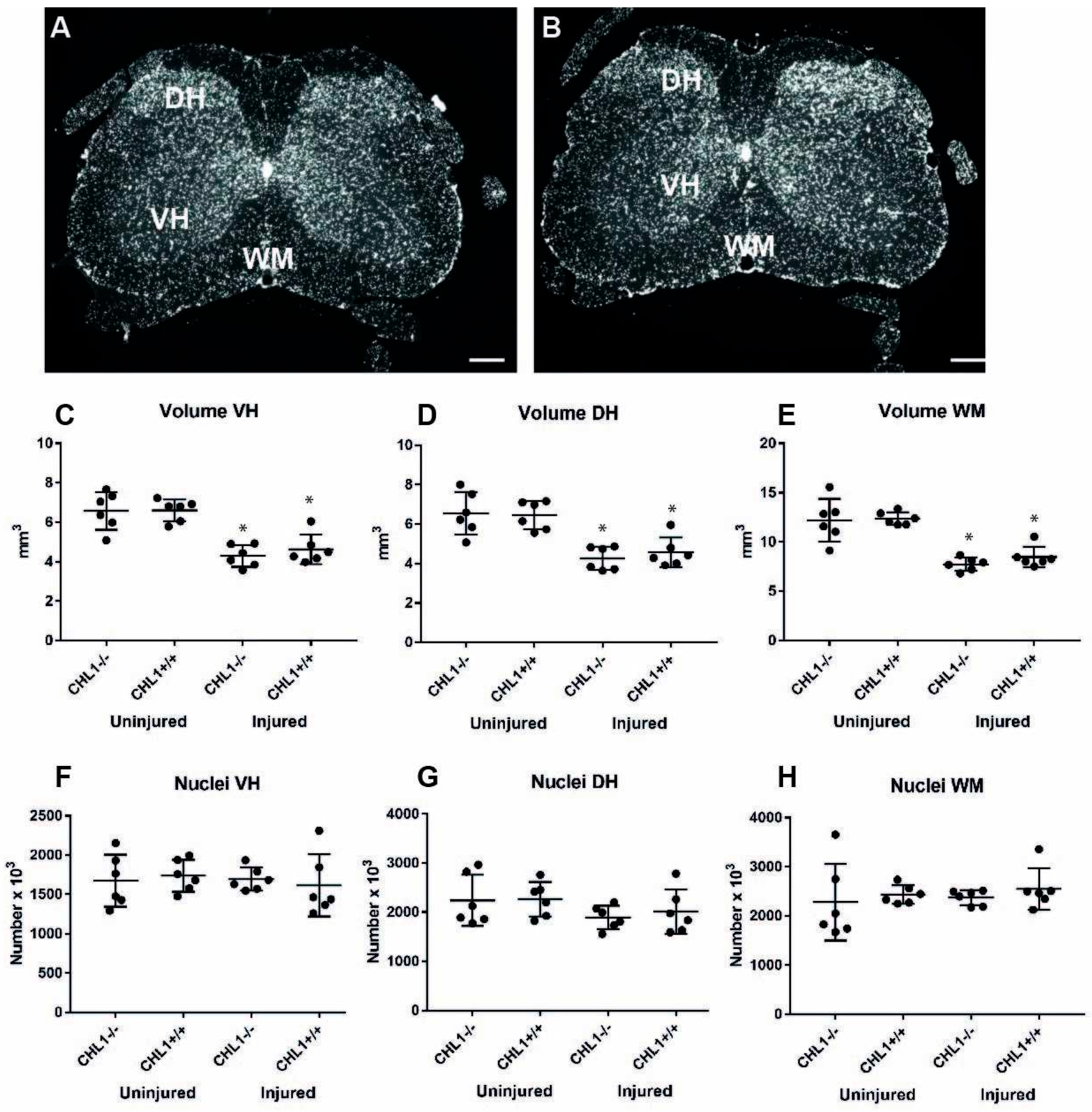 3.1. Reduction of the Lumbar Spinal Cord Volume Without Cell Loss After Injury