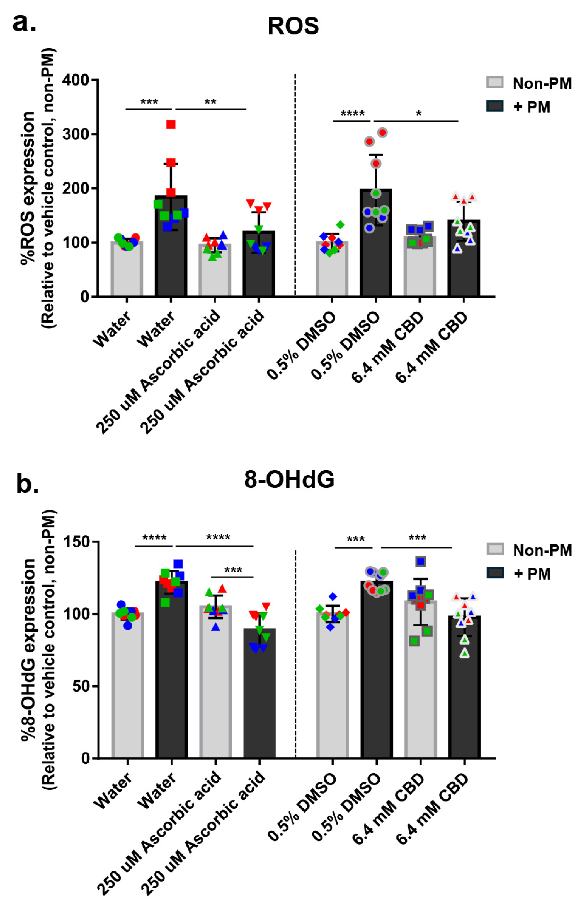 3.5. CBD Reduces PM-Induced Oxidative Stress in Human Skin Explants