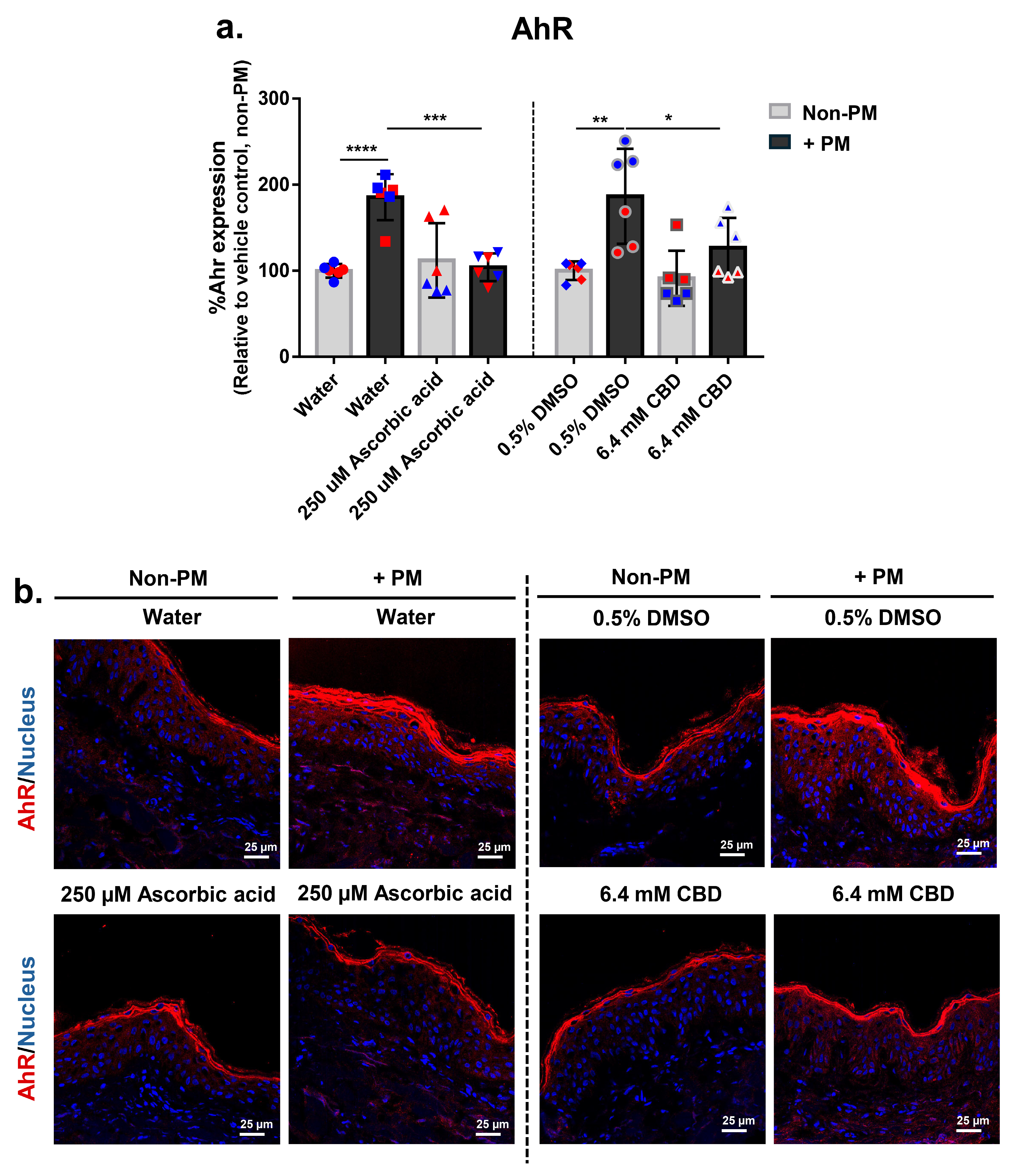 3.6. CBD Attenuates PM-Induced Aryl Hydrocarbon Receptor (AhR) Expression in Human Skin Explants