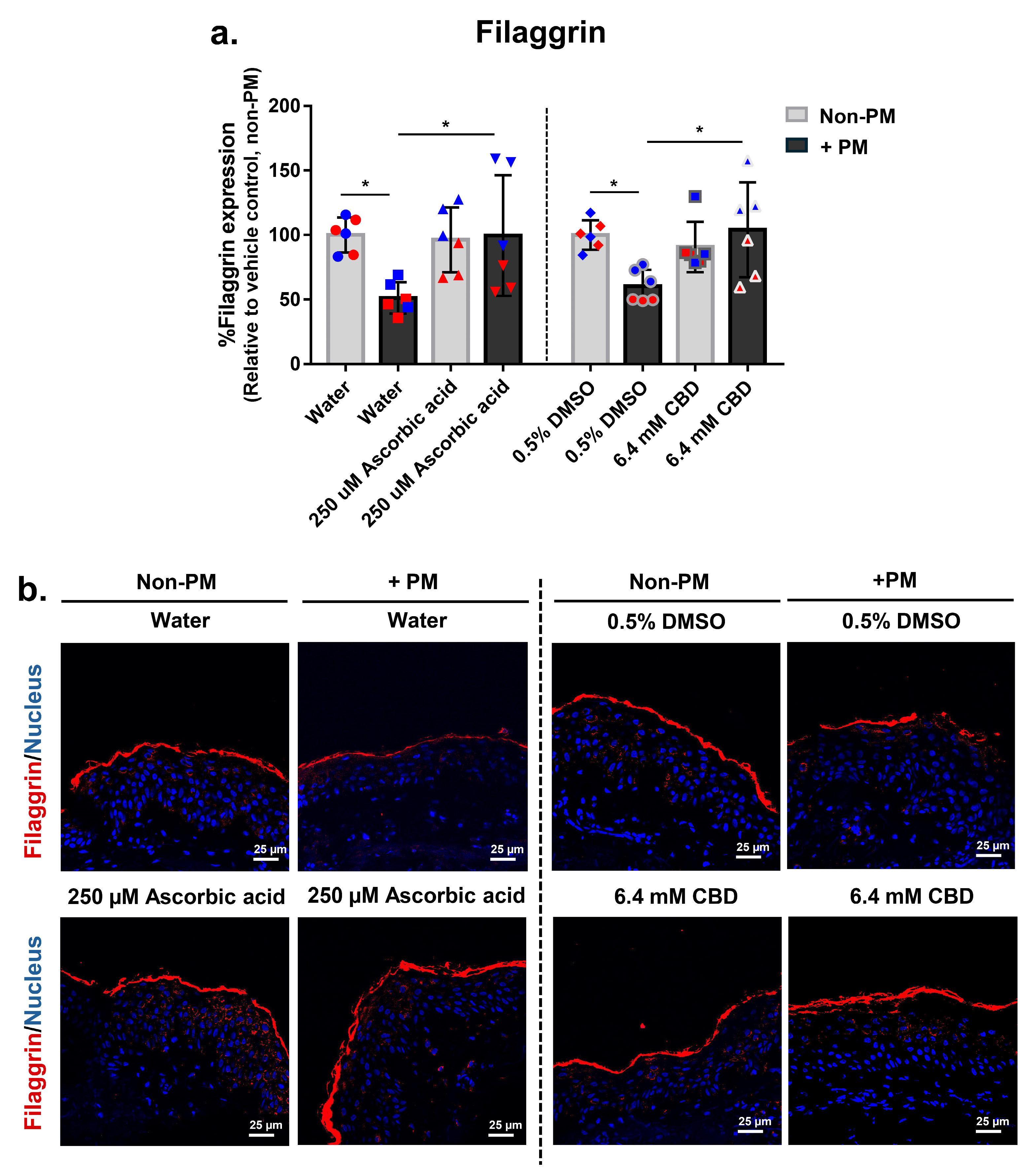 3.8. CBD Restores PM-Induced Loss of Filaggrin Expression in Human Skin Explants
