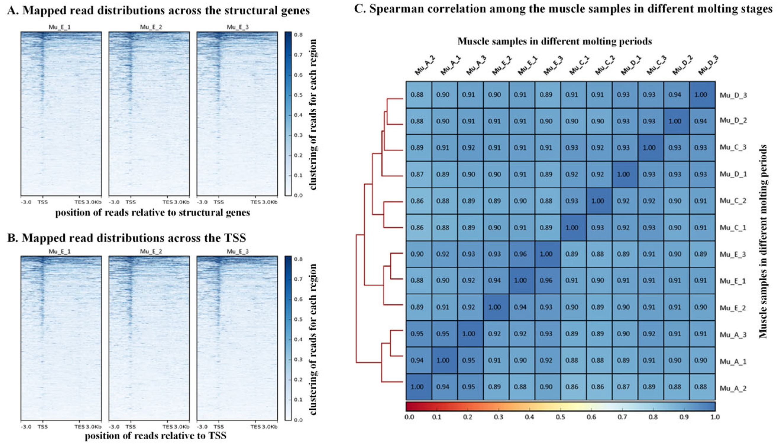 - Wang, B.; Li, J.; Zhang, M.; Li, A.; Song, Z.; He, Z.; Sun, J. Integration of ATAC-seq and RNA-seq reveals signal regulation during post-molt and inter-molt stages in muscle of Eriocheir sinensis. Front. Mar. Sci. 2025, 11, 1529684. [Google Scholar] [CrossRef]