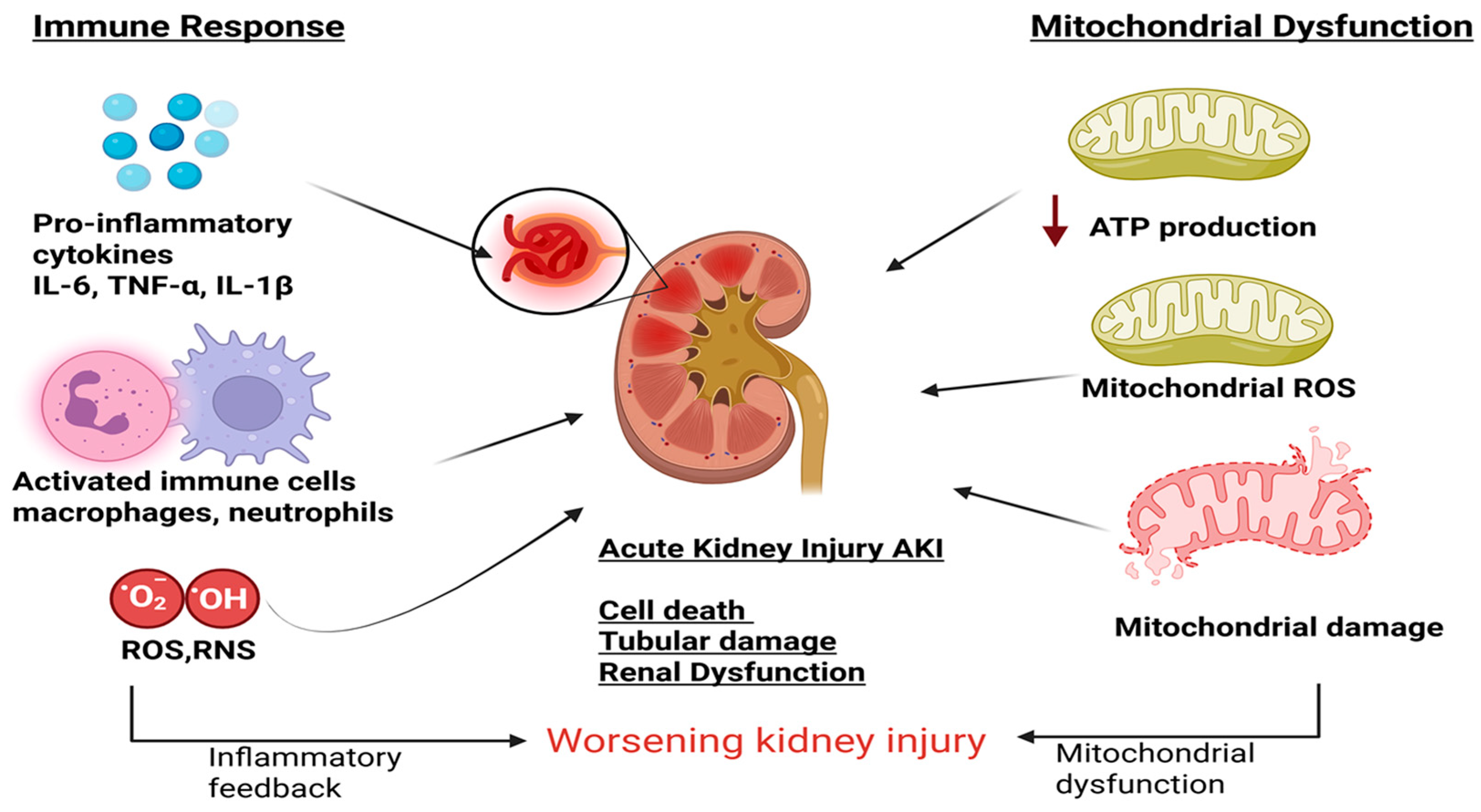 - Hepokoski, M.; Singh, P. Mitochondria as mediators of systemic inflammation and organ cross talk in acute kidney injury. Am. J. Physiol.-Ren. Physiol. 2022, 322, F589–F596. [Google Scholar]
