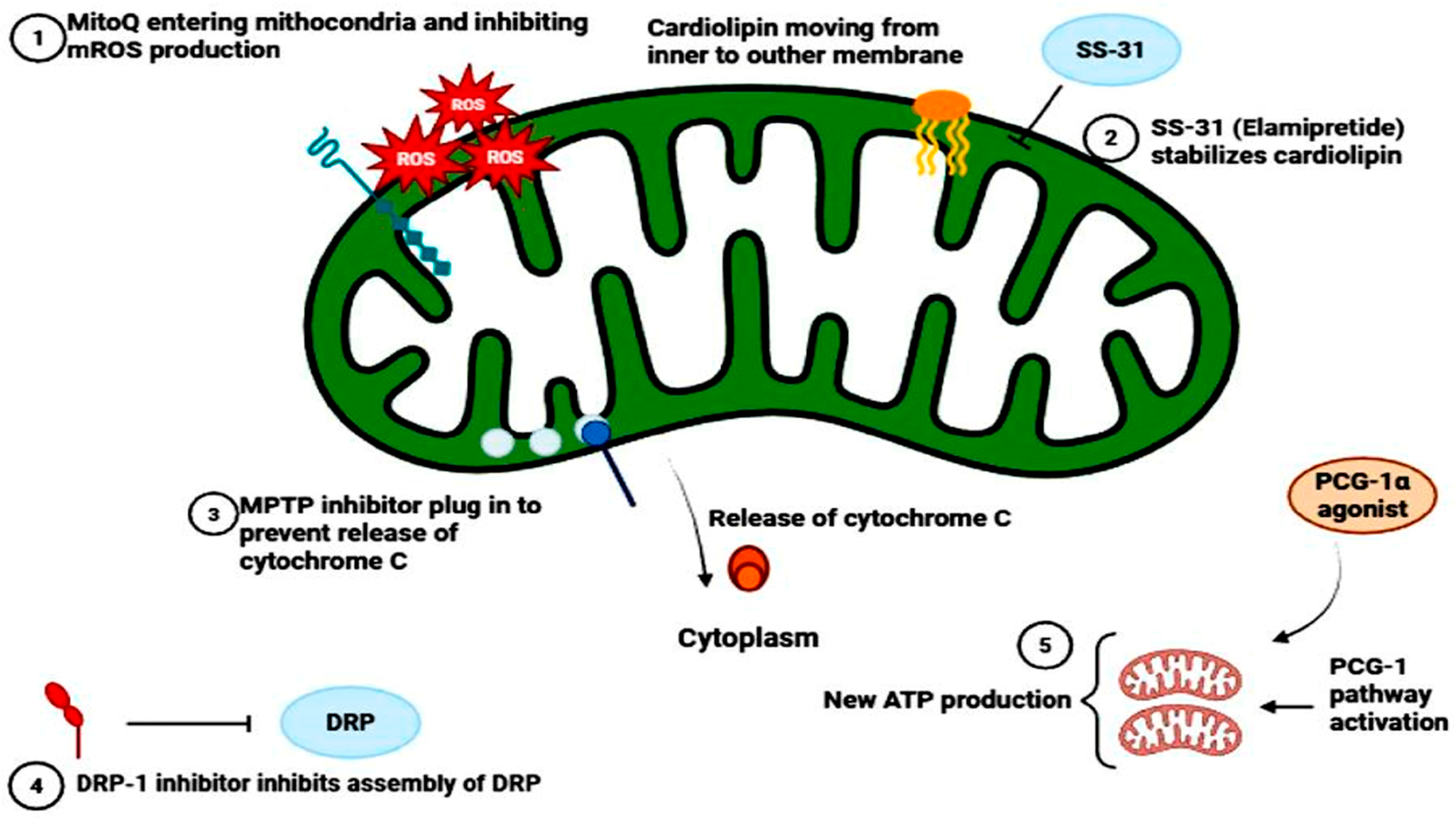 | SS-31 (Elamipretide) | Stabilize cardiolipin and ETC super-complexes | High-risk surgical patients; chemotherapy recipients | Pilot studies report improved renal perfusion and reduced injury markers | Large RCTs lacking; cost and route of administration limit use | [87] |