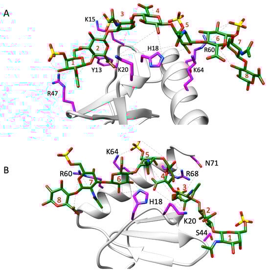 - Joseph, P.R.; Sawant, K.; Iwahara, J.; Desai, U.R.; Garofalo, R.; Rajarathnam, K. Lysines and Arginines play non-redundant roles in mediating chemokine-glycosaminoglycan interactions. Sci. Rep. 2018, 8, 12289. [Google Scholar] [CrossRef] [PubMed]