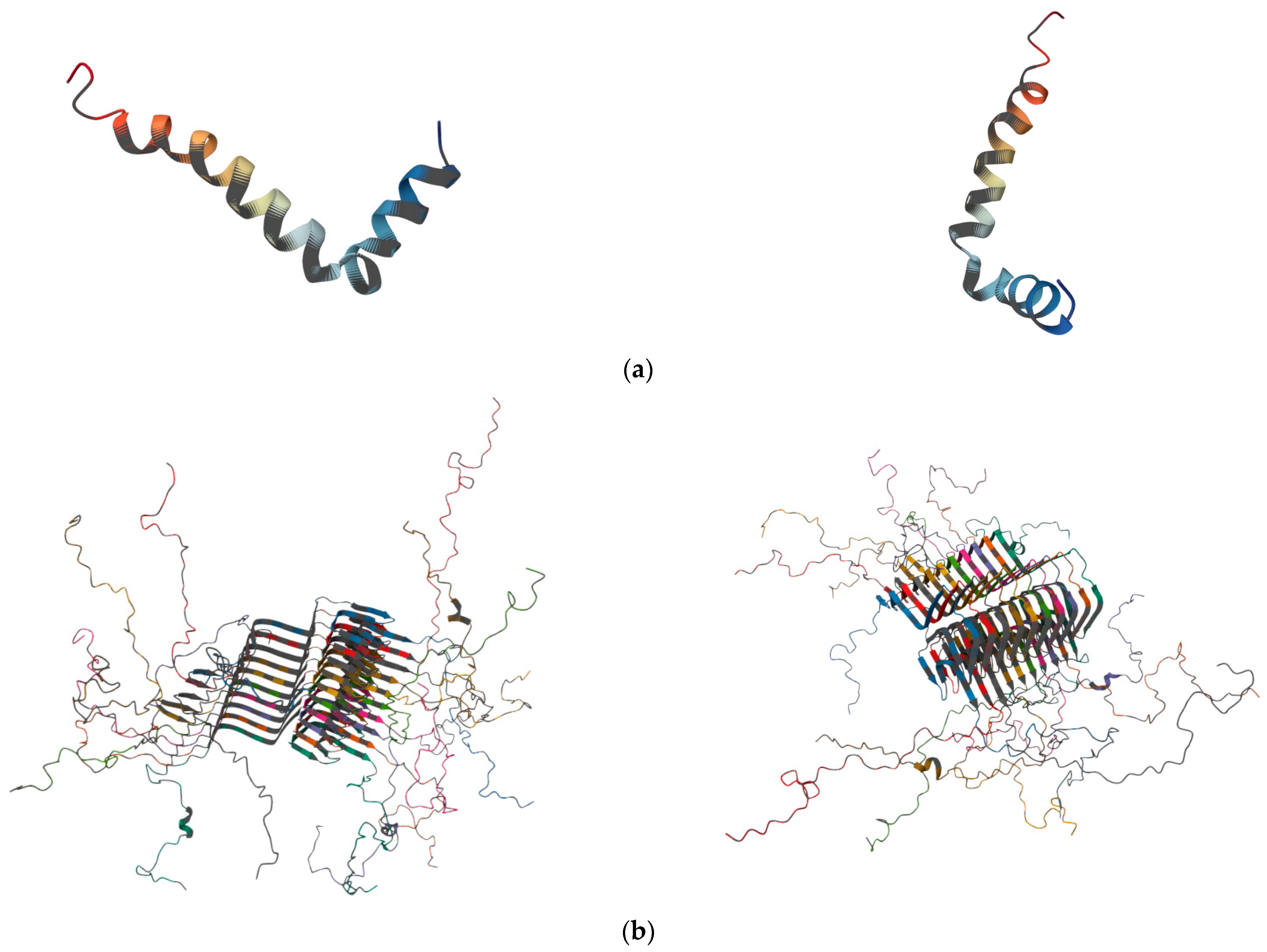 - Horne, R.I.; Andrzejewska, E.A.; Alam, P.; Brotzakis, Z.F.; Srivastava, A.; Aubert, A.; Nowinska, M.; Gregory, R.C.; Staats, R.; Possenti, A.; et al. Discovery of potent inhibitors of α-synuclein aggregation using structure-based iterative learning. Nat. Chem. Biol. 2024, 20, 634–645. [Google Scholar] [CrossRef] [PubMed]