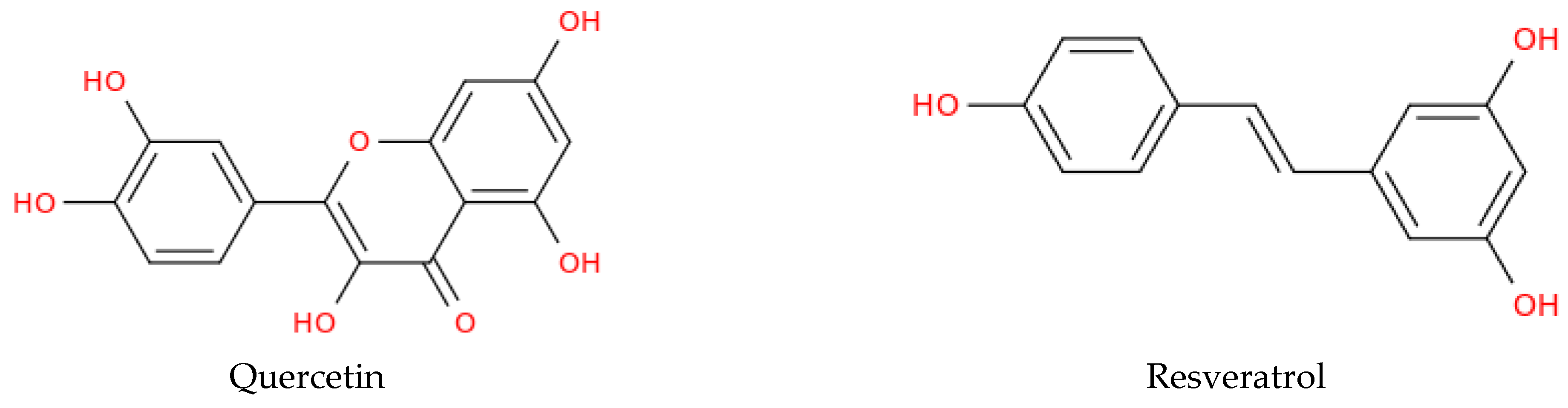 3.2. Polyphenols: Resveratrol, Curcumin, Caffeic Acid, CAPE, Ferulic Acid, EGCG