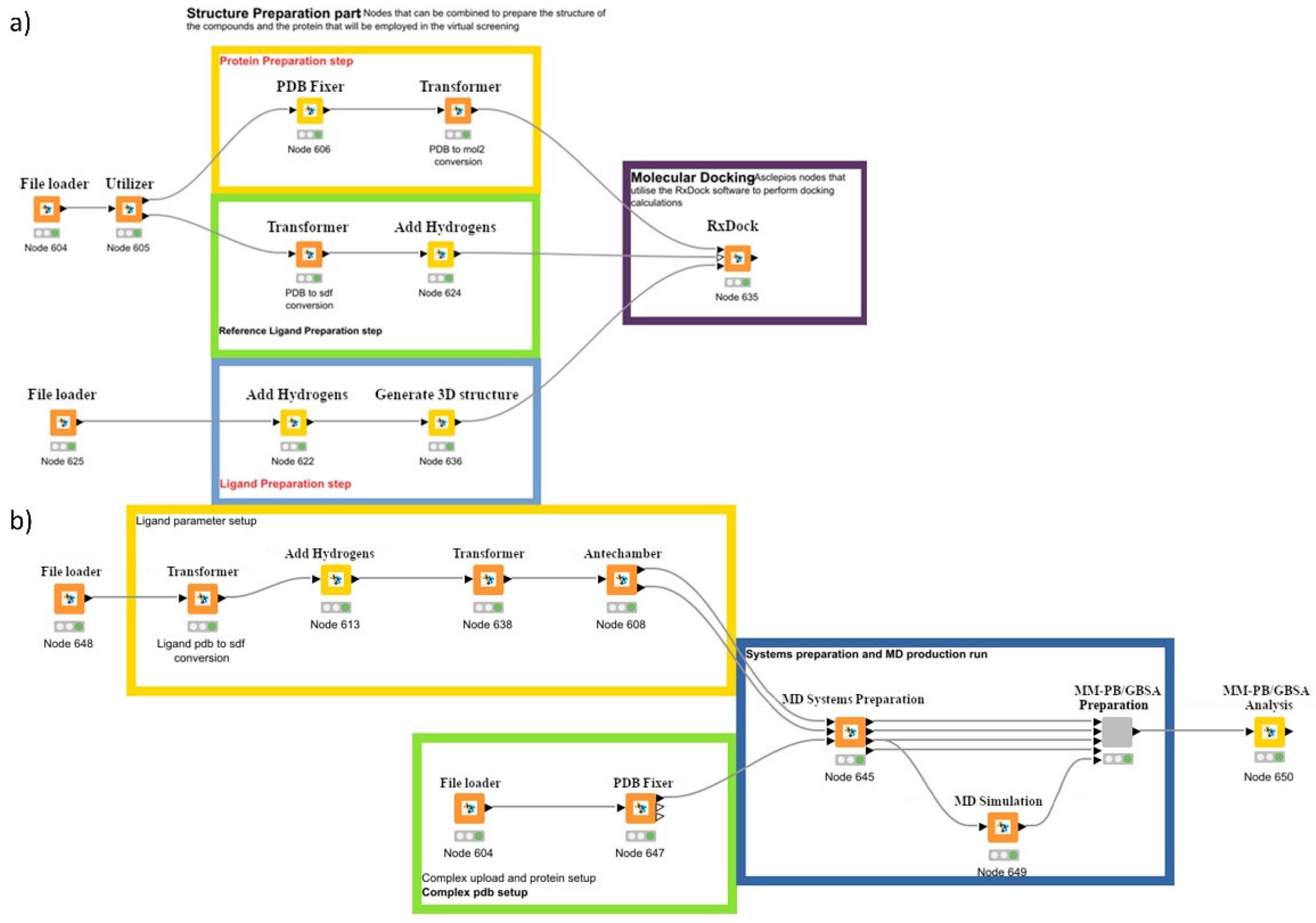 - Papavasileiou, K.D.; Tsoumanis, A.C.; Lagarias, P.I.; Kolokathis, P.D.; Koutroumpa, N.-M.; Melagraki, G.; Afantitis, A. PFAS-Biomolecule Interactions: Case Study Using Asclepios Nodes and Automated Workflows in KNIME for Drug Discovery and Toxicology. In Computational Toxicology: Methods in Molecular Biology; Nicolotti, O., Ed.; Springer: New York, NY, USA, 2025; Volume 2834, pp. 393–441. [Google Scholar]