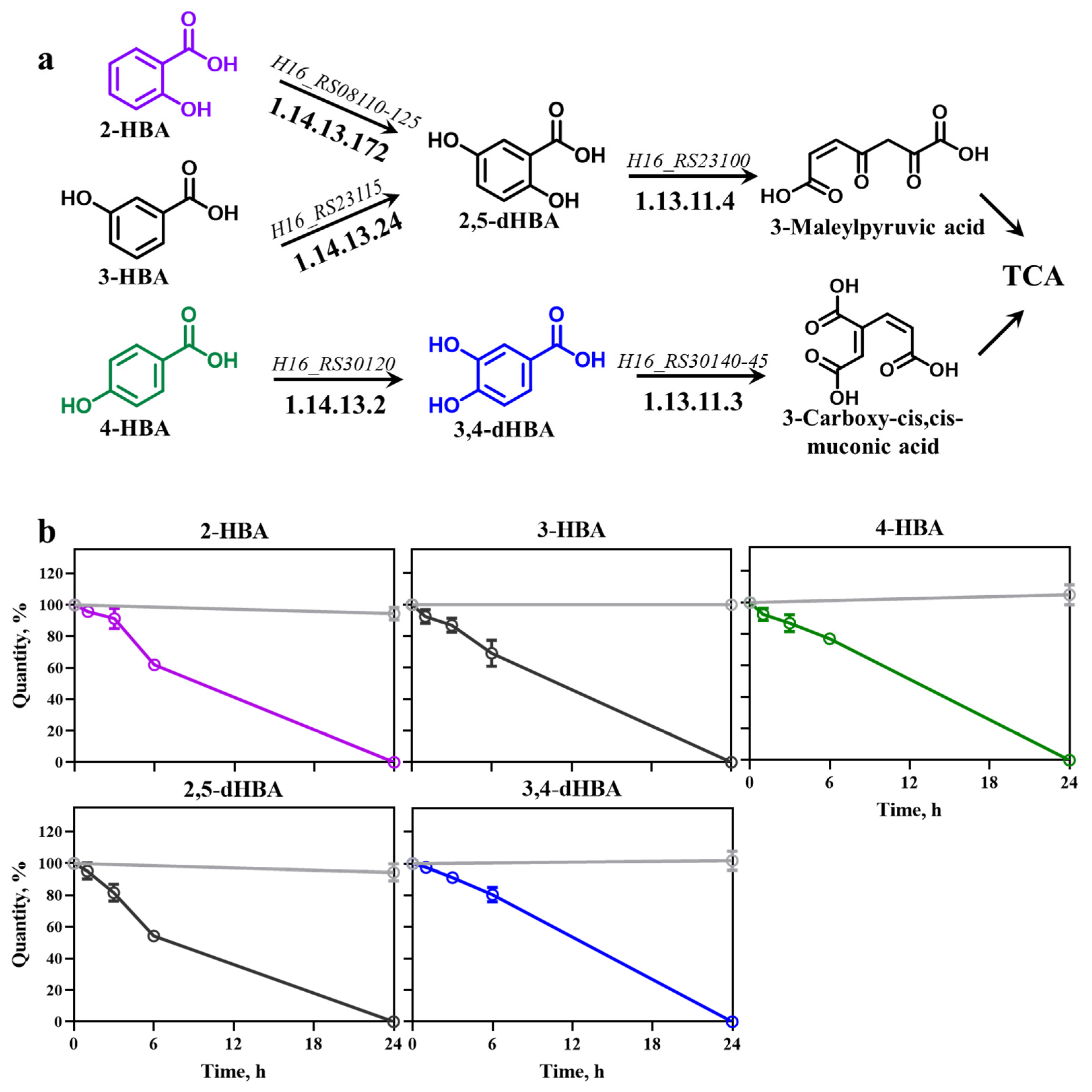 3.1. Metabolism and Consumption of HBAs and dHBAs in C. necator