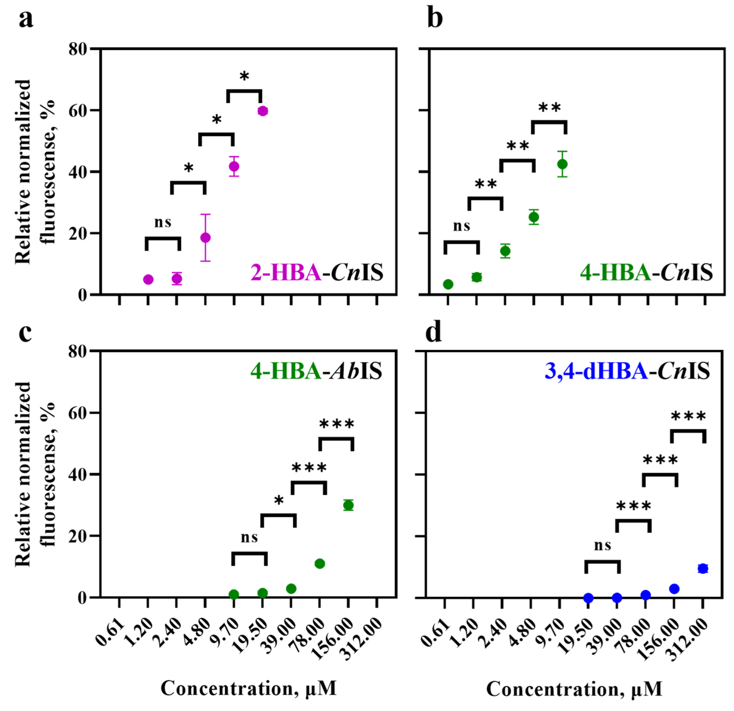 | 4-HBA-CnIS | 4-HBA | CnPobR/PpobA | E. coli Top10 | 2.4 | 13.06 ± 2.49 |