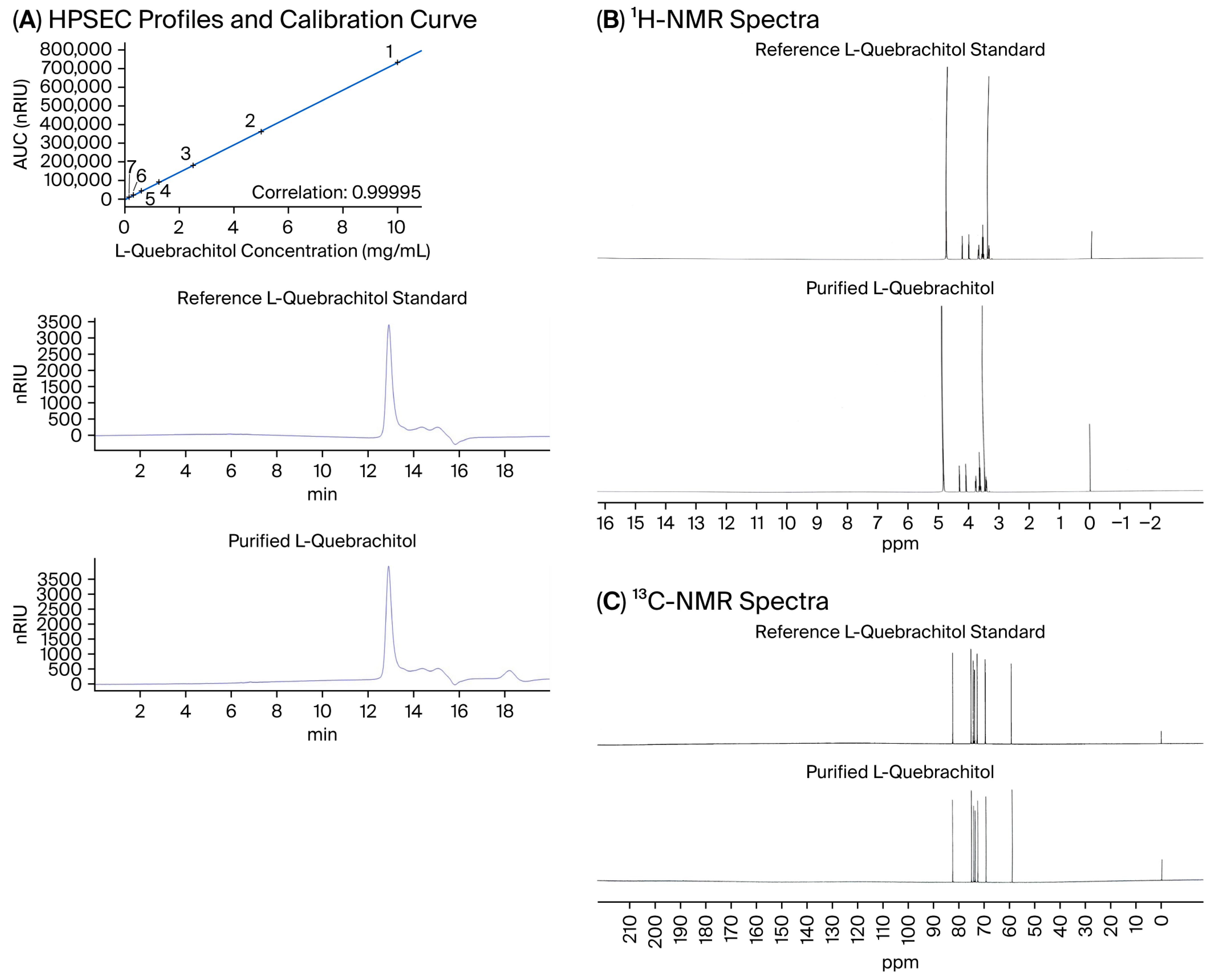 3.1. Purification Yield, Identity, and Purity of L-Quebrachitol