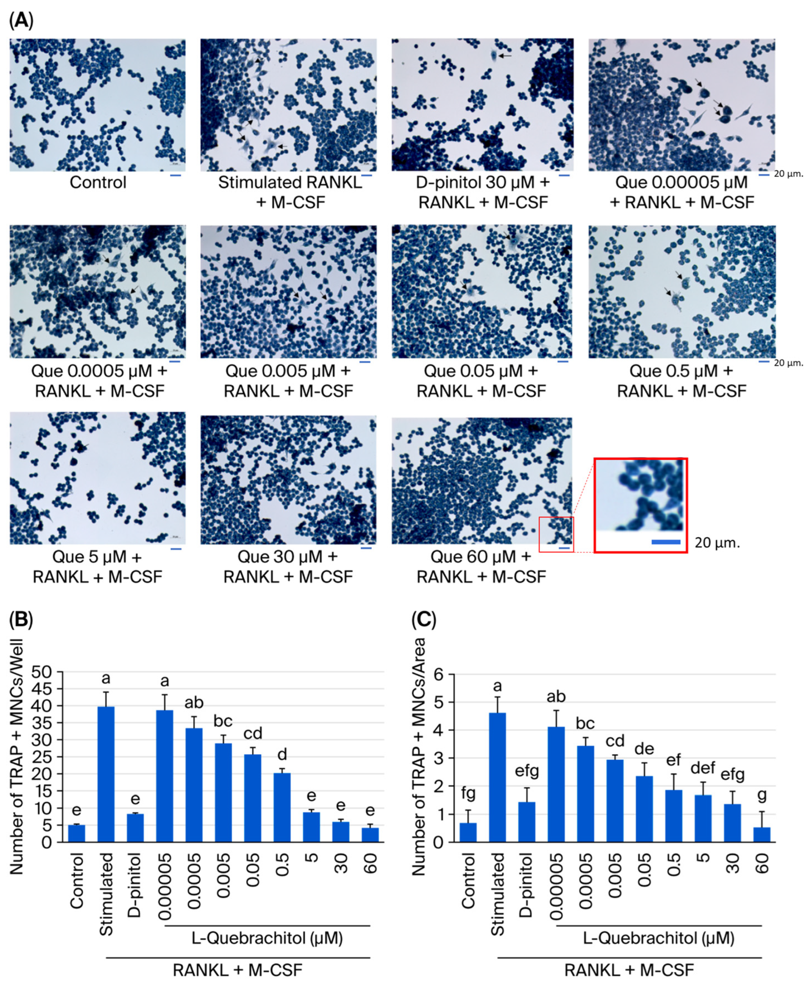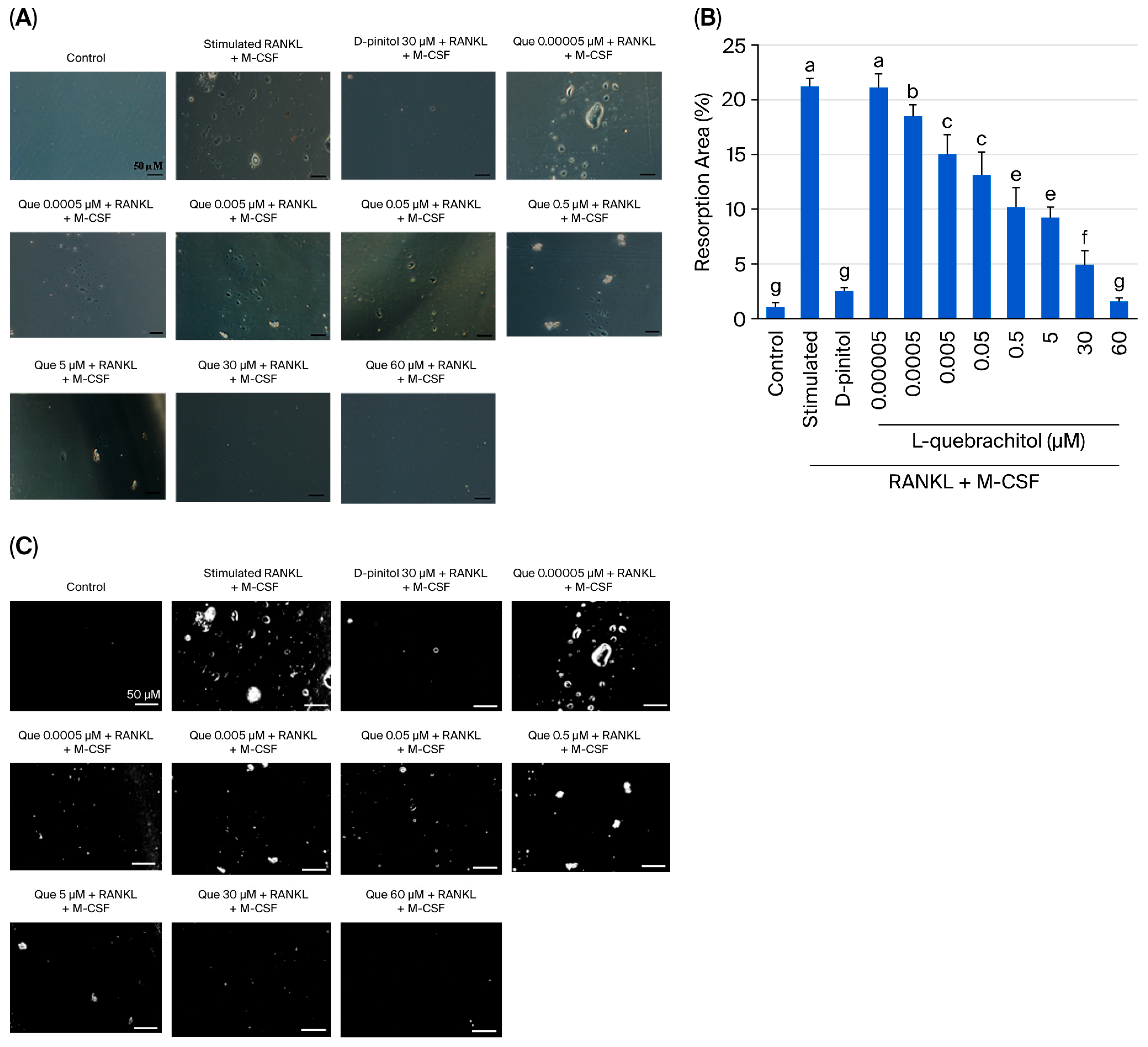 Rattajak P, Aroonkesorn A, Yodthong T, Issuriya A, Maskaew S, Smythe C, Wititsuwannakul R, Pitakpornpreecha T. L-Quebrachitol Attenuates RANKL-Induced Osteoclastogenesis and Bone Resorption in Ovariectomized Rat Model. Biomolecules. 2026; 16(1):168. https://doi.org/10.3390/biom16010168