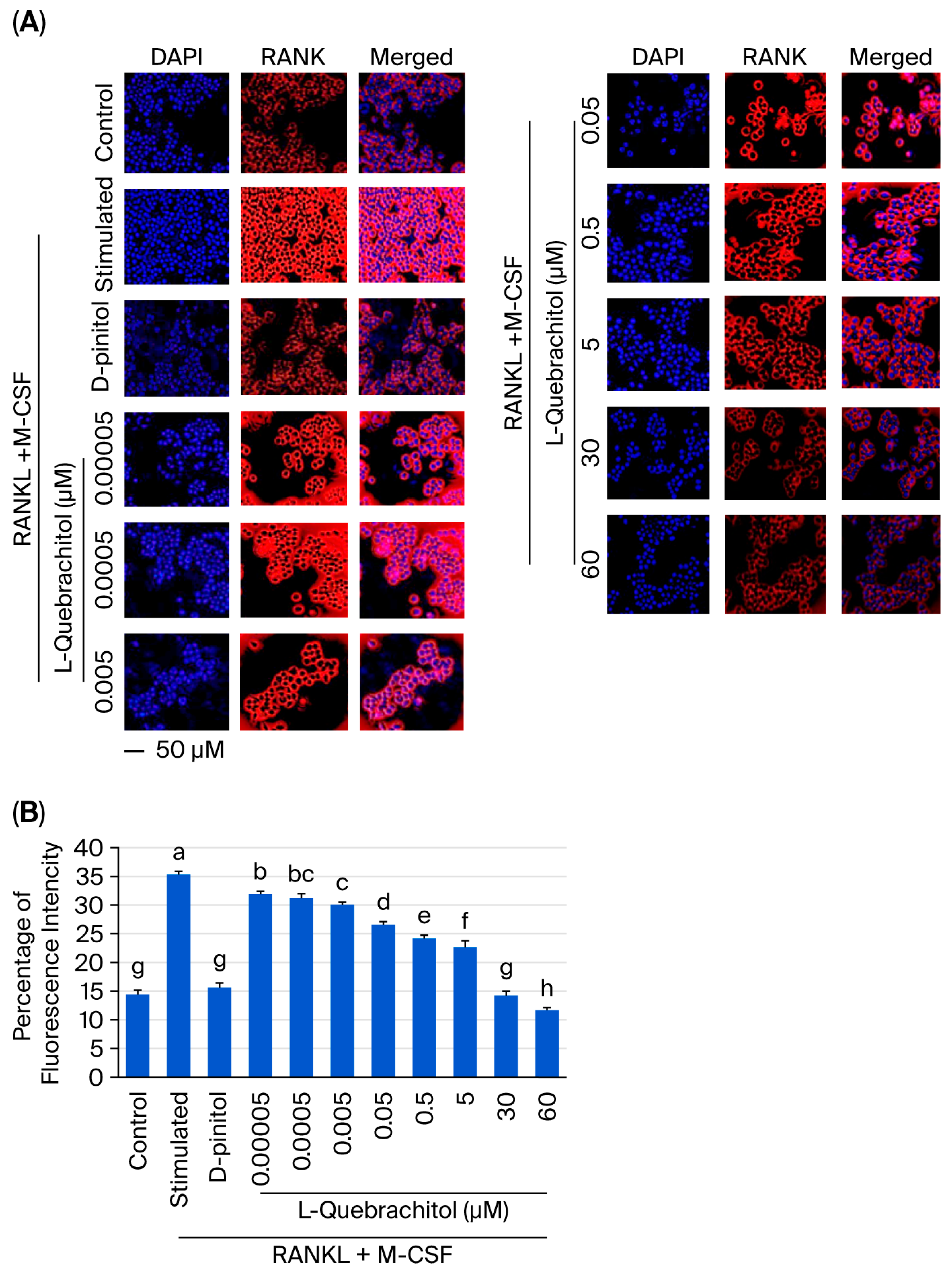 3.3. Effect of L-Quebrachitol on Osteoclast Differentiation Induced by RANKL