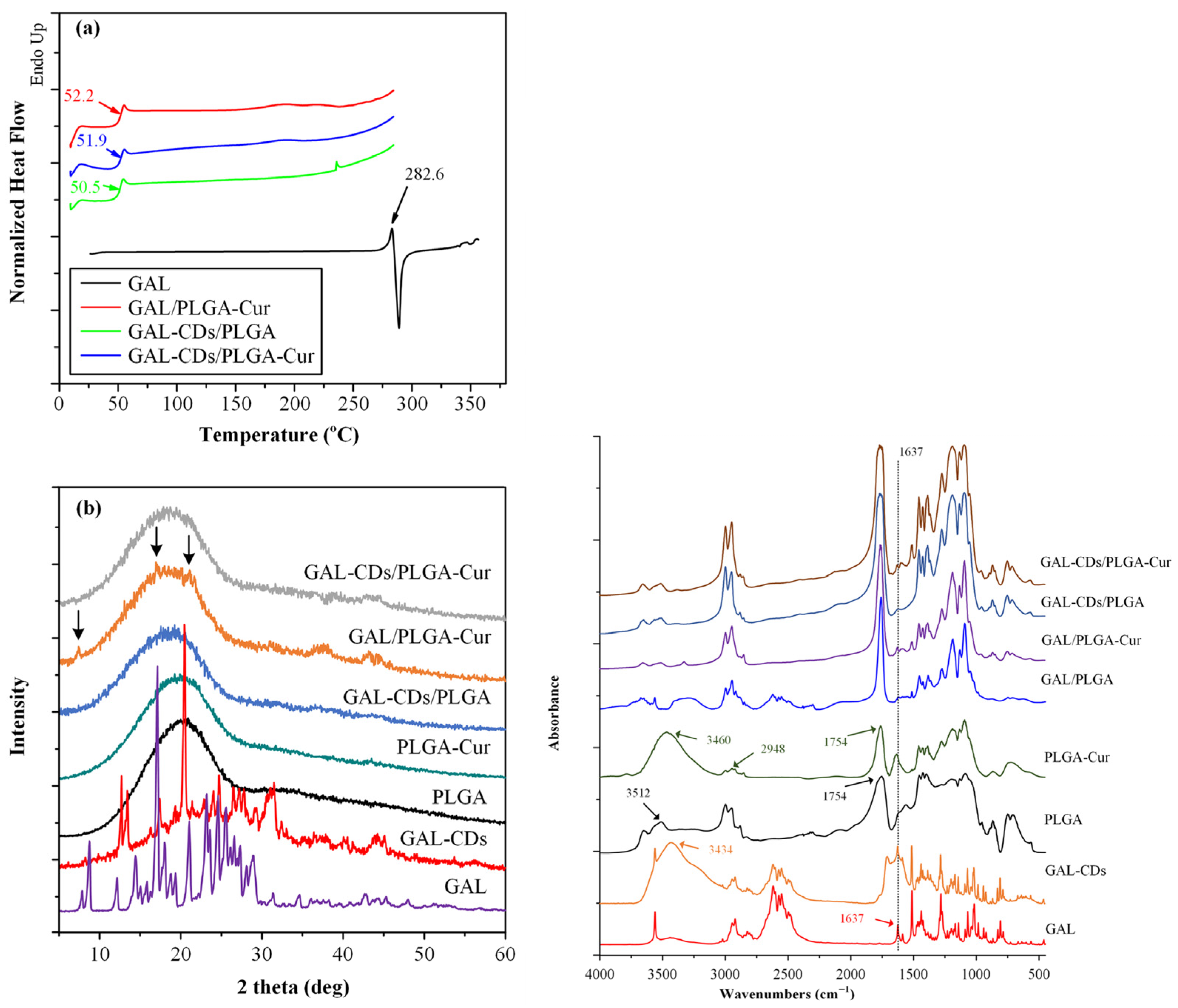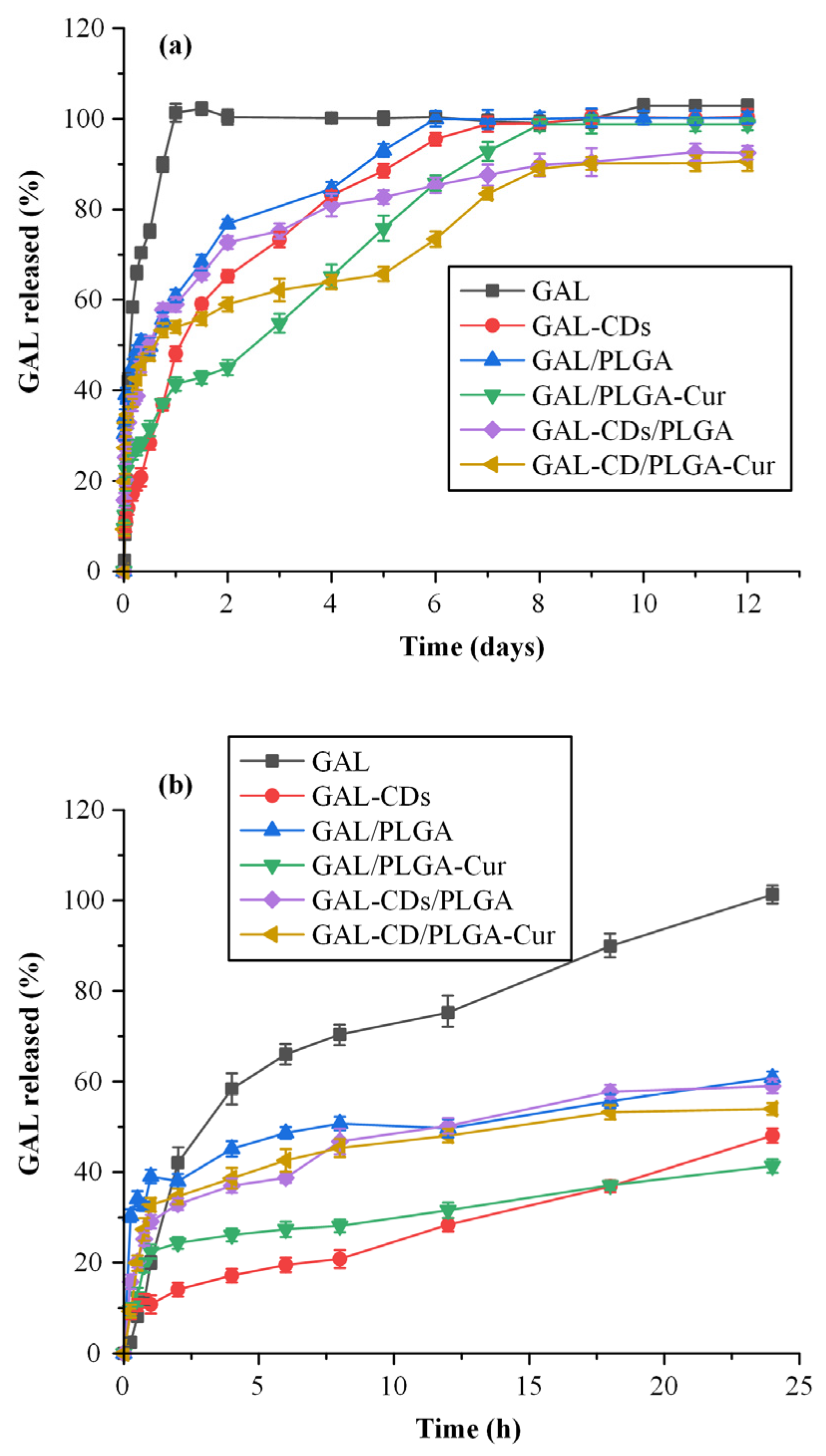 | GAL/PLGA | GAL/PLGA-Cur | GAL-CDs/PLGA | GAL-CDs/PLGA-Cur | |||||