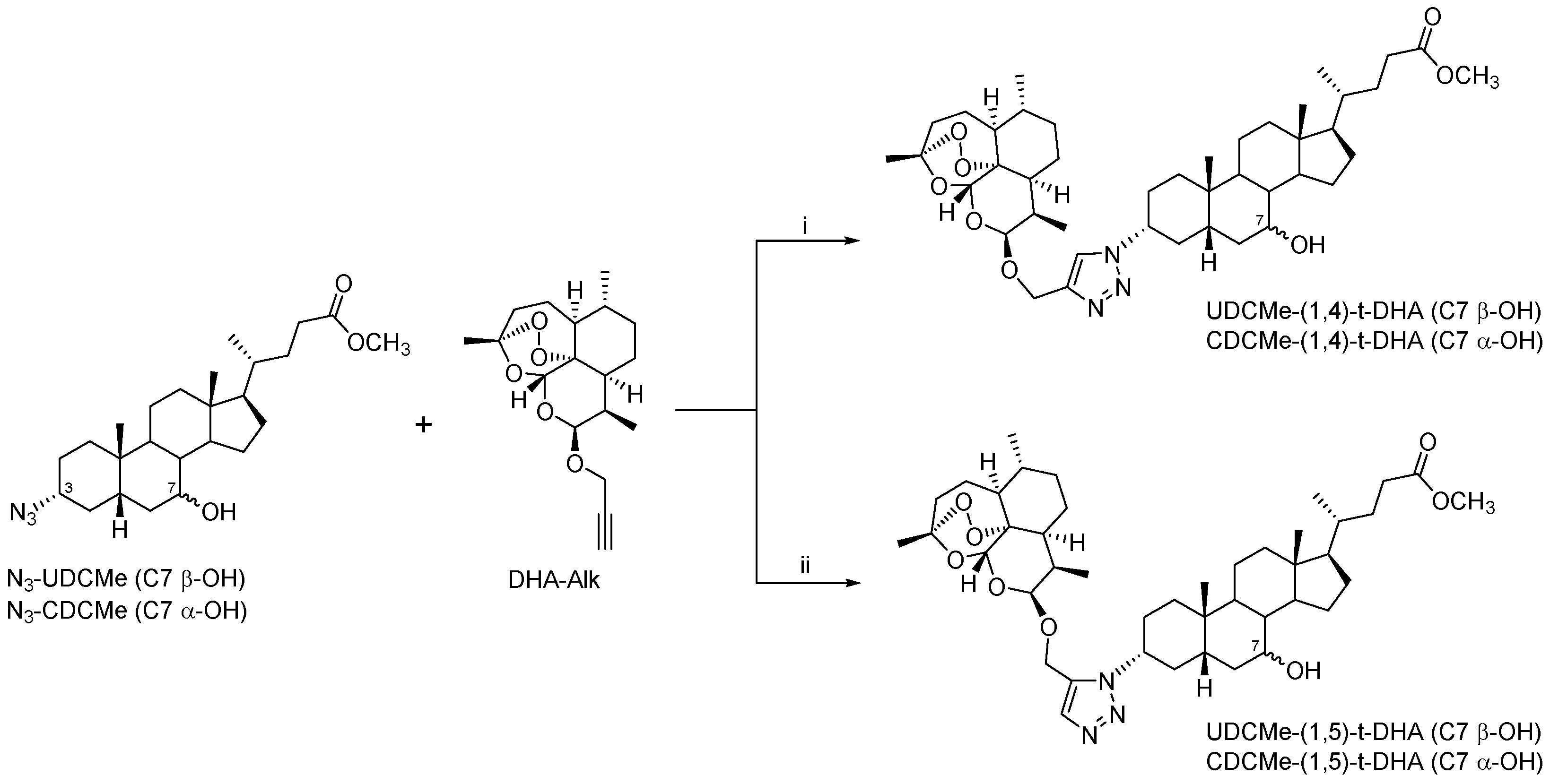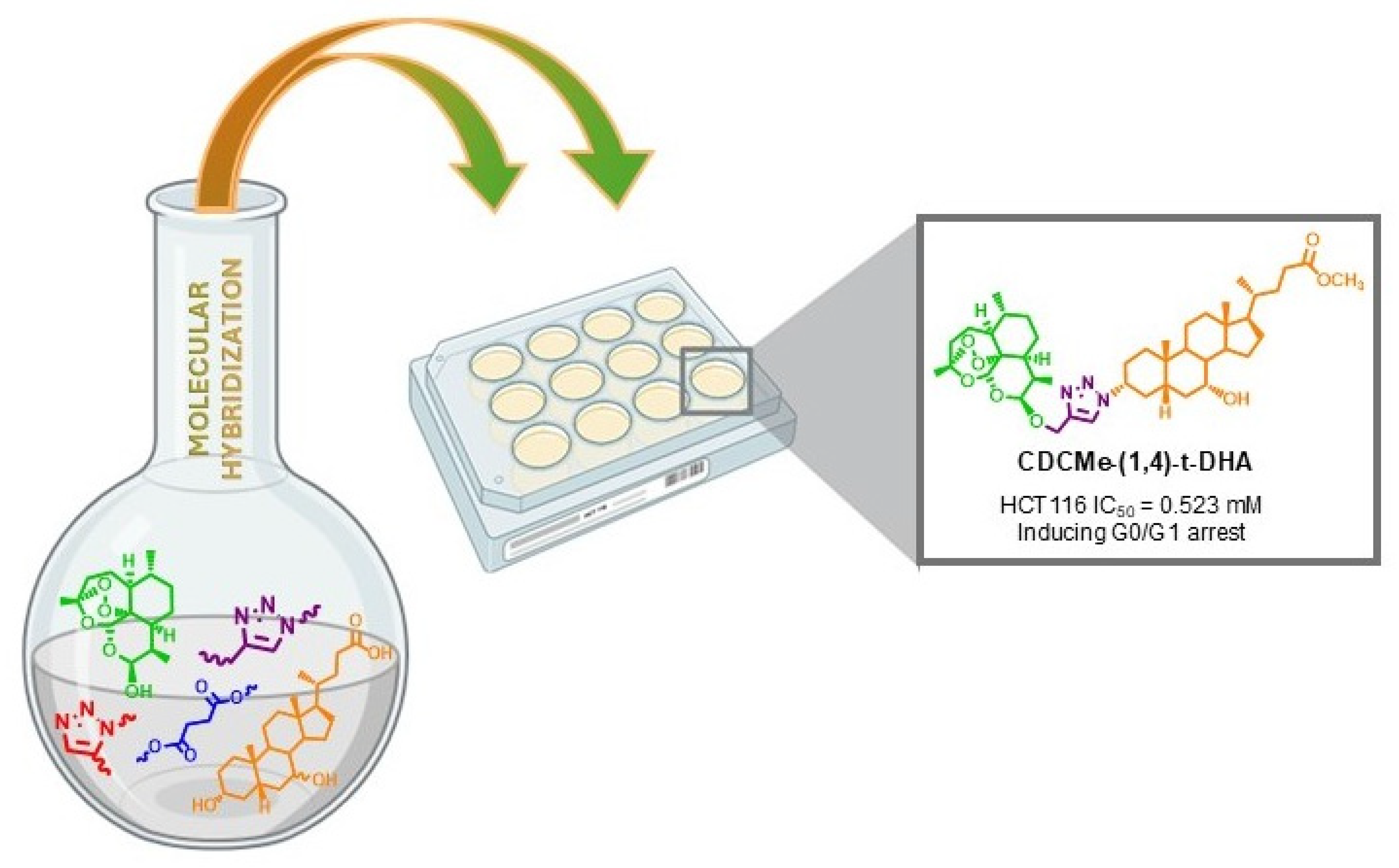 - Marchesi, E.; Chinaglia, N.; Capobianco, M.L.; Marchetti, P.; Huang, T.; Weng, H.; Guh, J.; Hsu, L.; Perrone, D.; Navacchia, M.L. Dihydroartemisinin–Bile Acid Hybridization as an Effective Approach to Enhance Dihydroartemisinin Anticancer Activity. ChemMedChem 2019, 14, 779–787. [Google Scholar] [CrossRef]